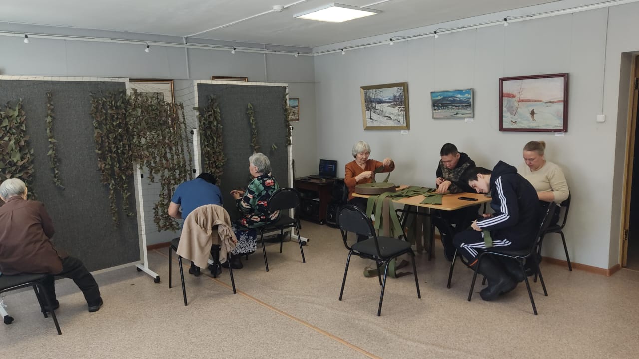 Также получатели вместе плетут маскировочные сети для наших защитников отечества.